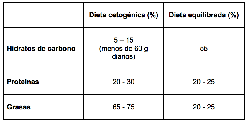 Para que te hagas una idea, esta es la proporción de calorías en una dieta cetogénica respecto a la de una dieta equilibrada «común»: